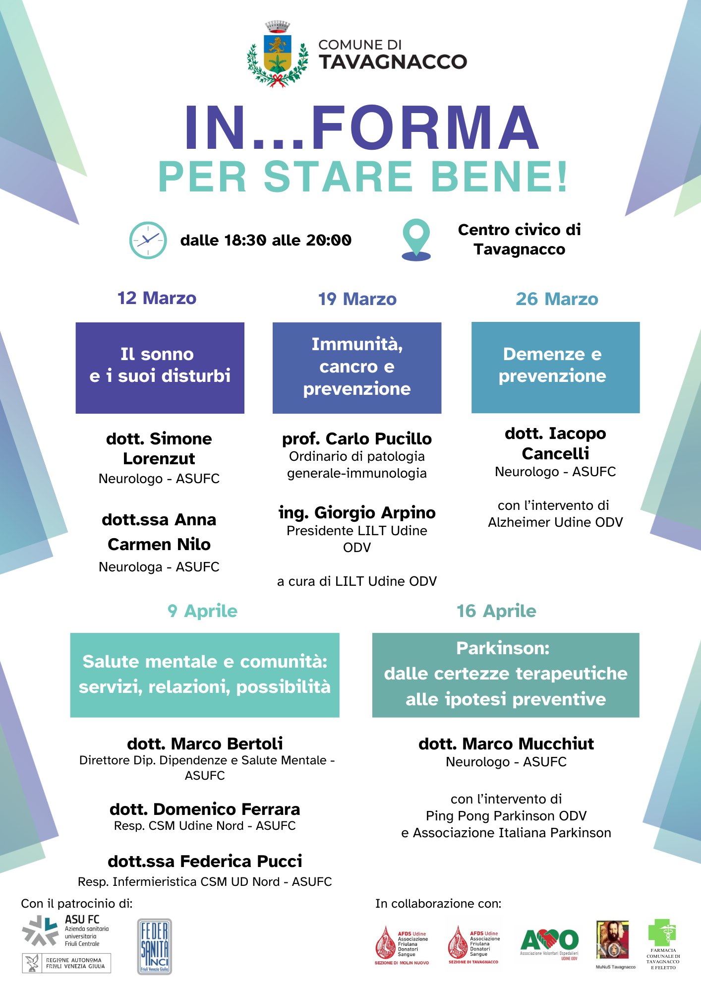 Tornano le serate di informazione sanitaria in programma al Centro Civico di Tavagnacco.